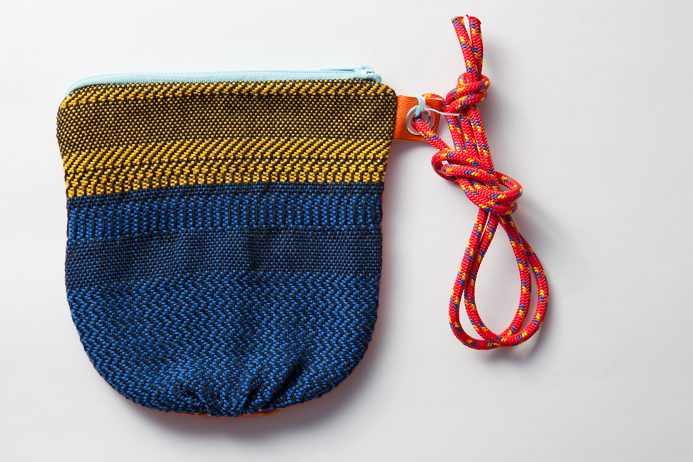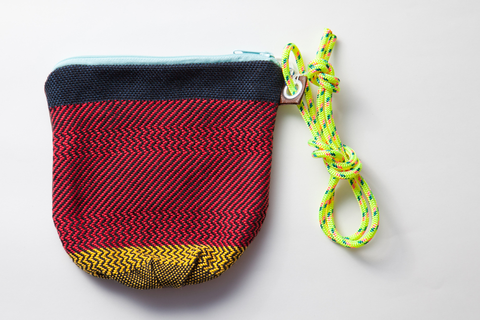 「この形ってホント、唯一無二っていうか…。僕の生地じゃなくても可愛いし、形も可愛いと思うんです。このへんとか。それを自分の生地で作ってみたいっていうのがあって。最初は鞄を作る時に出る端切れでやっていたんですが、皆さん可愛いと言ってくれるので。コレを作る為にやってみようかなって。派手目に、あんまり統一感があると面白くないので崩し目というか…。全体的にクールなカッコ良さじゃなくて、少しどんくさい感じをデザインの中に残したい…予想通りの色味じゃなくて、『ココで、こうクル?!』みたいなのが面白いです。」