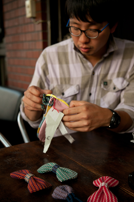 織物の事や織機の事を学び5年ぶりに大阪に戻り、友人らとブランドを設立。併行して染めの工場でも一年半修行。その後、昨年2010年にその染めの工場を辞め booworks をスタート。